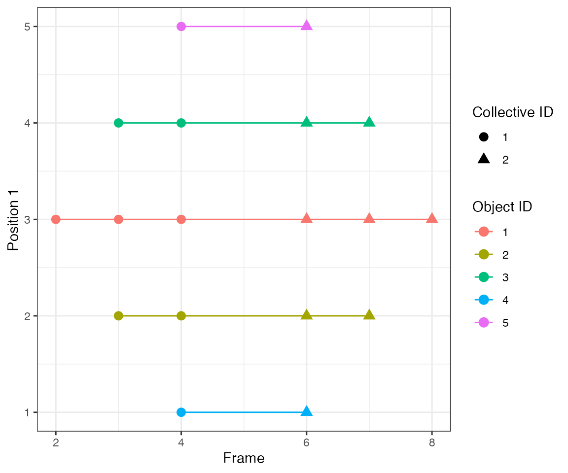 nPrev = 1L), the tracking algorithm identifies 3 collective